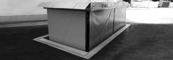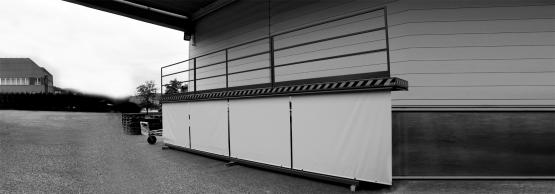 Der Hubtisch ist komplett feuerverzinkt ausgeführt ist geeignet für Einsatz im Freien und hat alle sicherheitstechnisch notwendigen Applikationen wie verriegelte Türen, Geländer, PVC Rollo, Schaltleisten.